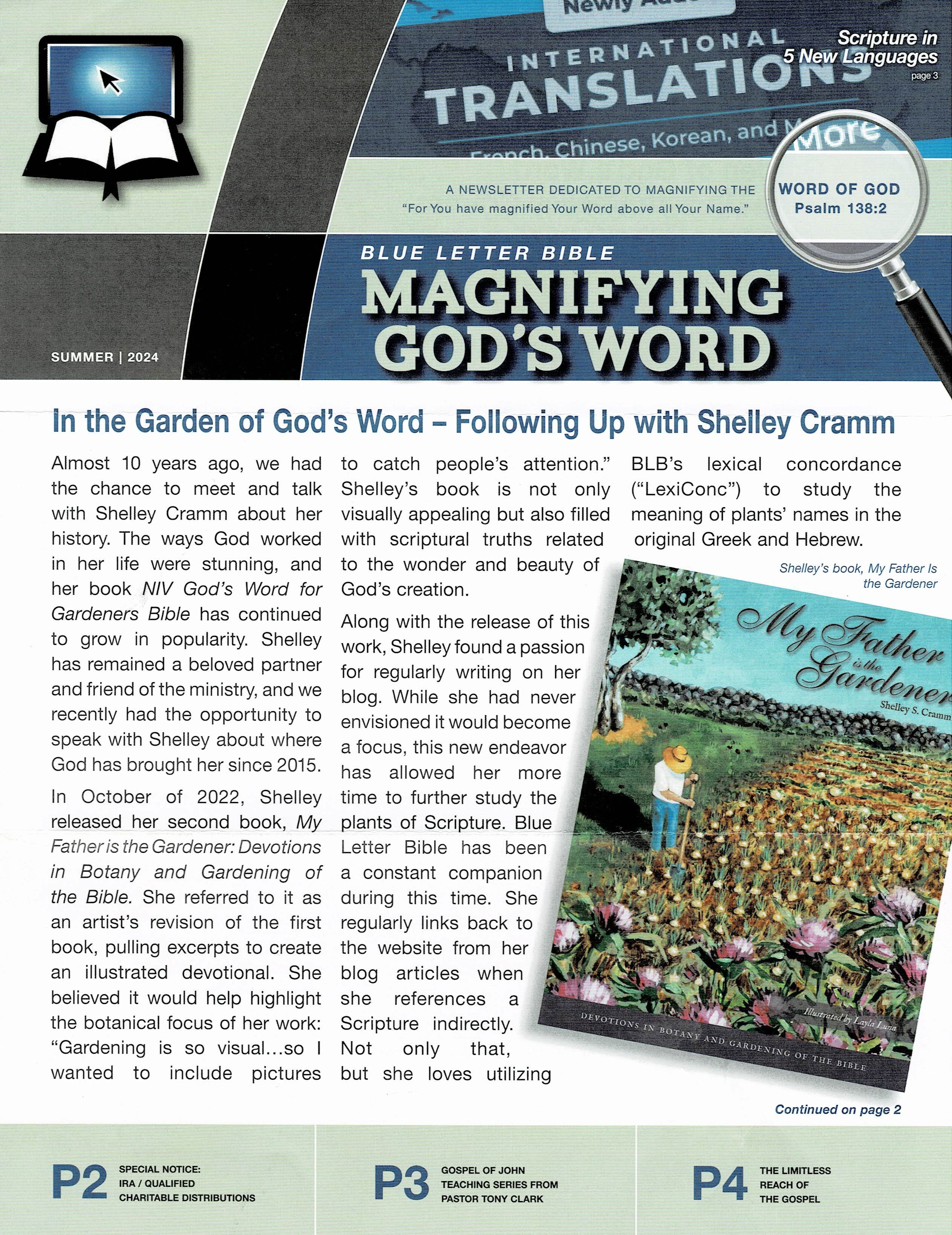 enjoy the cover article on “In the Garden of God’s Word,” featuring my partnership with Blue letter Bible ministry and their enthusiasm for my latest book, My Father is the Gardener