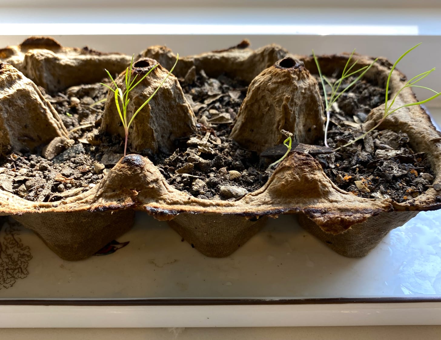 What’s on your windowsill? I have been inspired to grow cumin, Cuminum cyminum, once again. Although I have found this to be a tempermental plant to grow from seed and have failed many times in the past, I am newly inspired by the Greenhouse Production Specialist at Fort Worth Botanic Garden, with whom I collaborated throughout the summer for our fall Family Workshop. She sprouted a pot of seeds along with other Biblical species grown for the class, and look, look! Some of mine have sprouted, too. With our extended warm season this year, I am ready transplant them to our garden to enjoy through fall to spring for summer flowering.